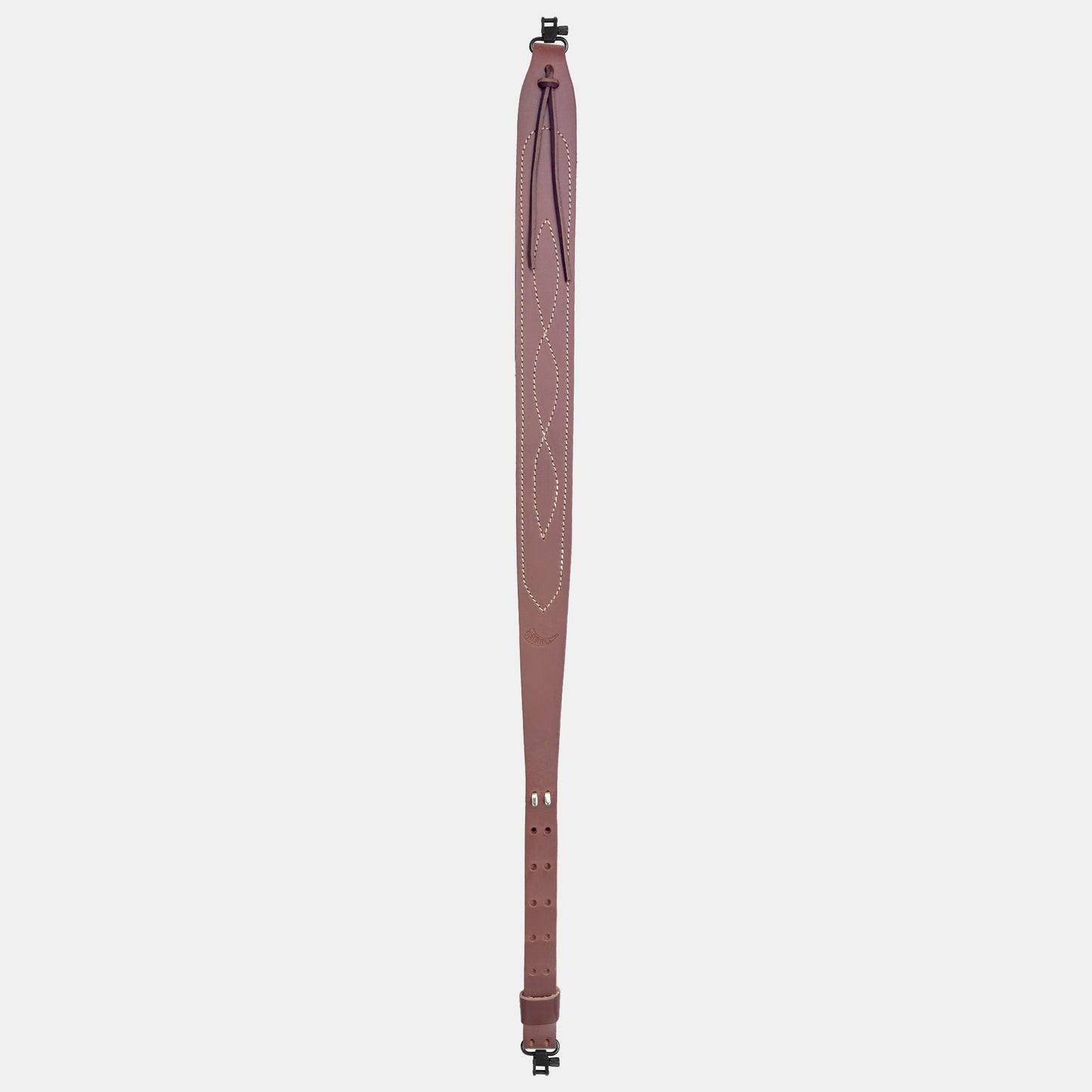 Hunter's American Full-Grain Leather Cobra Sling is suede lined with a stitched design and fits 1" swivels. The strap has no metal hardware, with durable nylon stitching.
