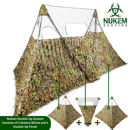 - The Double Up System Includes 2 Nukem Grab and Go Hunting Blinds XL with 1 Double Up Panel XL