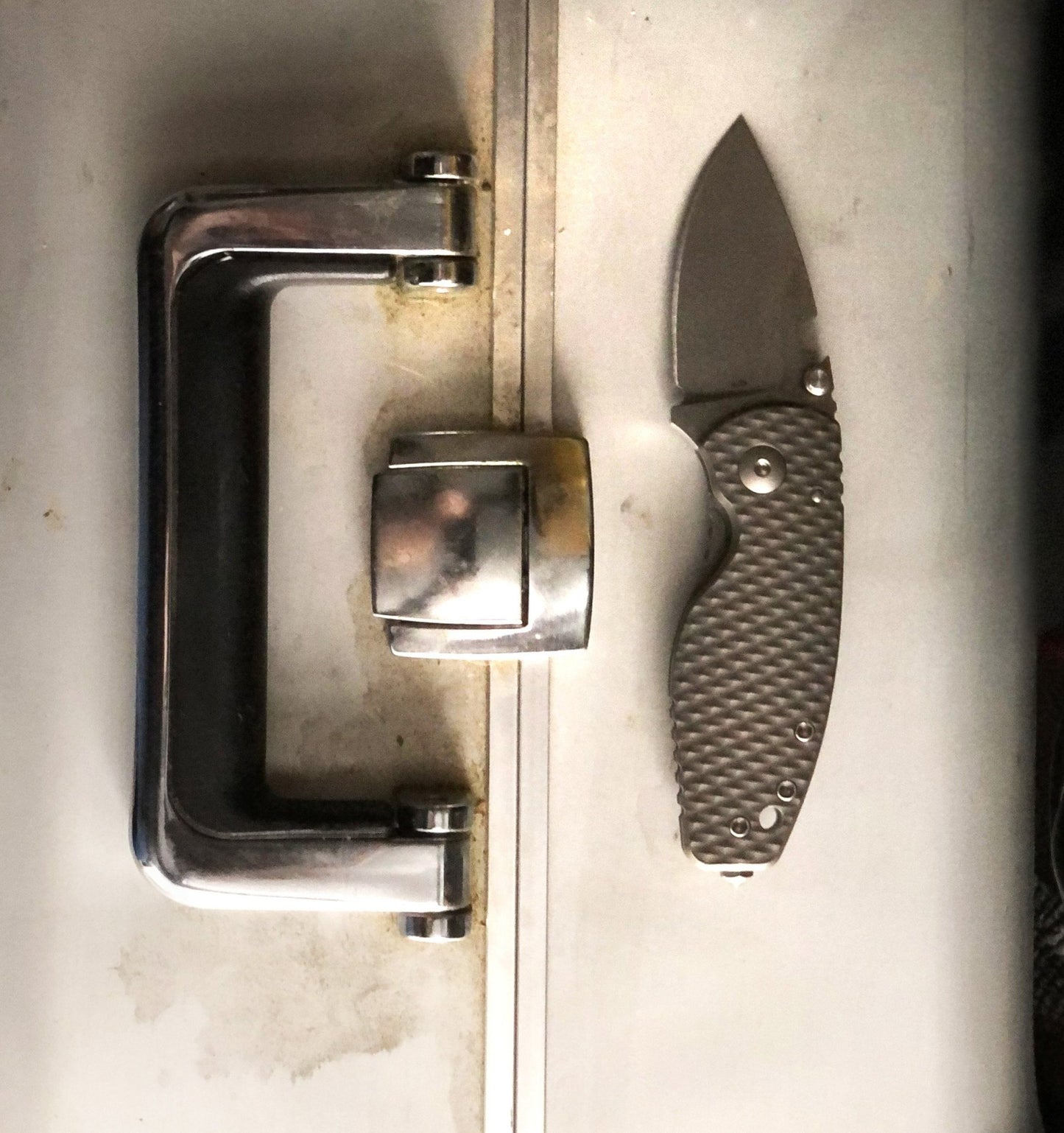 - Sandblasted 6Al4V grade 5 titanium alloy frame lock and handle scale