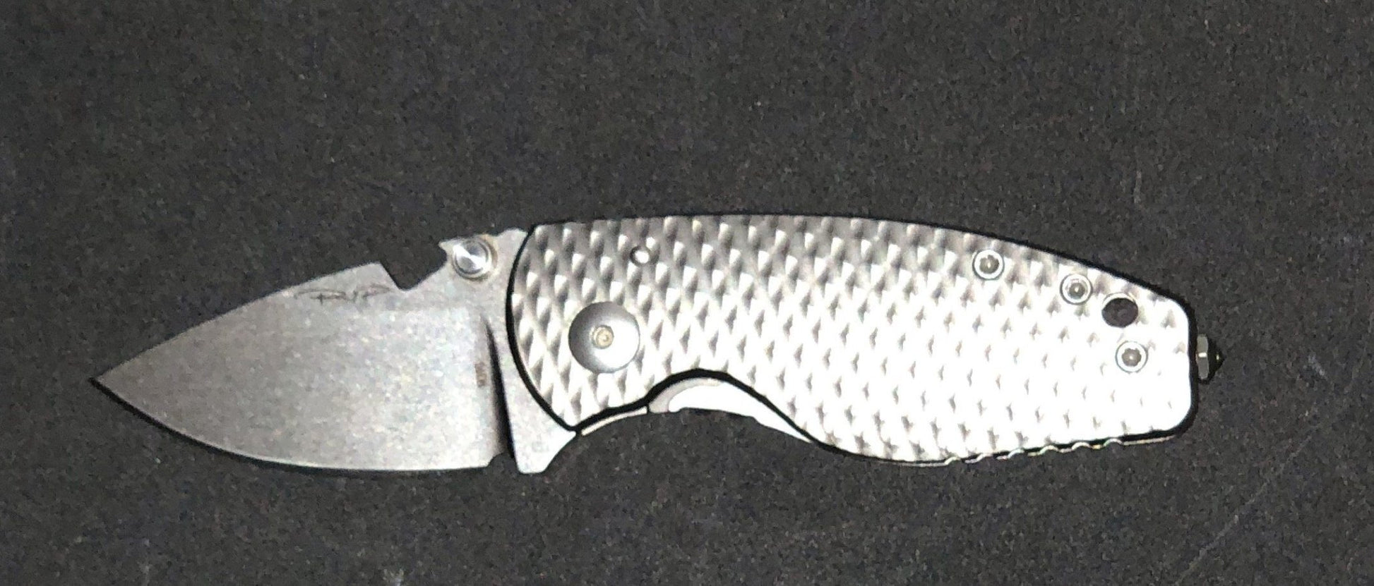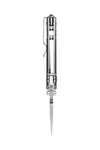 - Reversible sandblasted stainless steel "combat" syle clip Tungsten carbide glass breaker with hex base