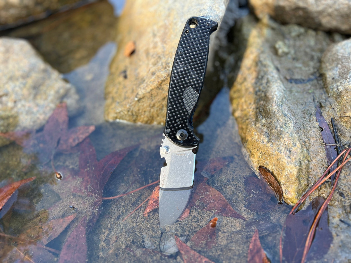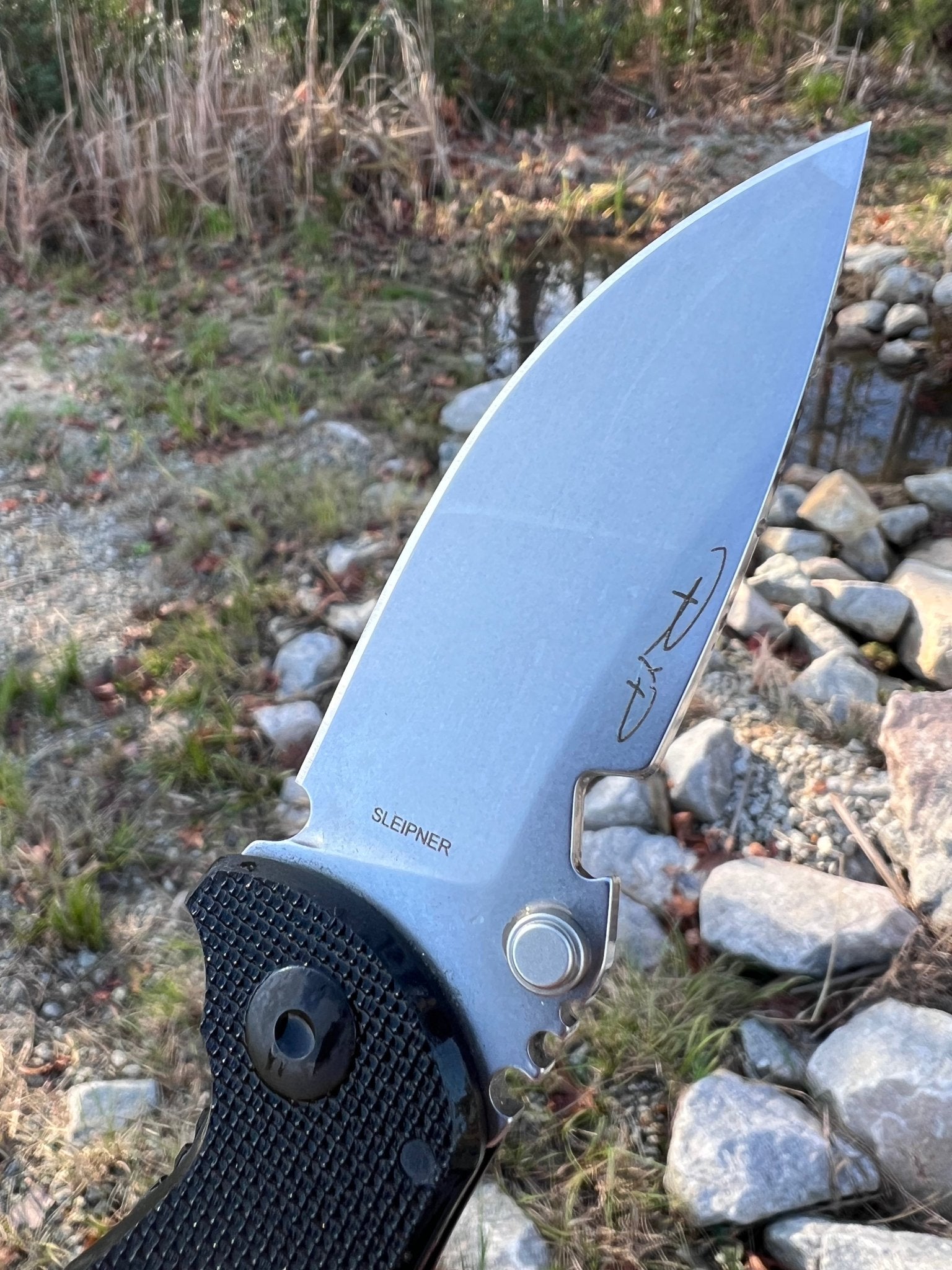 - Stonewashed Sleipner steel blade