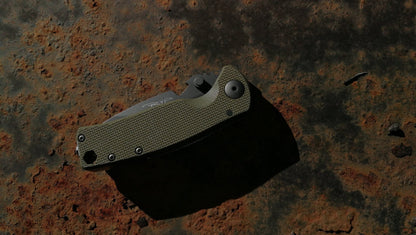 Lock side is 6Al4v Titanium / Olive Drab G10 Phenolic in rough finish |