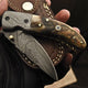 The Summit is a premier everyday carry folding pocket knife that combines craftsmanship with utility. Featuring a 3-inch razor-sharp Damascus steel blade, it ensures precision and longevity for all your cutting needs. The handle, crafted from mountain sheep horn with a Damascus bolster, offers a blend of rugged durability and refined elegance. Intricate file work on the liner and spine adds to the knife's aesthetic appeal while enhancing grip and functionality. Equipped with a reliable liner lock mechanism and a high-quality leather sheath, The Summit is designed for secure use and easy portability. With a Rockwell Hardness of 55-58 HRC, it delivers exceptional edge retention and strength. Available exclusively at KBS Knives Store.