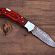 This custom handmade Damascus pocket knife is a true blend of craftsmanship and functionality. Featuring a 3-inch Damascus steel blade, it offers excellent edge retention and striking patterning. The handle is crafted from exotic wood, enhanced with a polished steel bolster for a refined grip and classic look. A reliable back lock mechanism ensures safe use during every task. Each knife comes with a genuine leather case for protection and portability, making it ideal for collectors and everyday carry users alike.
