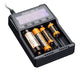 Charge up to 4 batteries at the same time with the new Fenix ARE-A4 Battery Charger. This amazing 4-channel battery charger is compatible with a multitude of batteries including 14500, 16340 and 18650 batteries. You can also charge Ni-MH and Ni-Cd AA, AAA, and C batteries. You can have peace of mind when you use the all-new ARE-A4 charger since it provides 4 layers of security for safe use including short-circuit, over-current, over-voltage, and reverse polarity protection. Additionally, you can view the most current battery charging setting on the ultra-bright LCD screen. Single clicks on the charger button allow you to cycle through charging specs including battery voltage, charging current, and charging time. A long press or click will turn off the LCD screen. Pick up the new Fenix battery charger today.