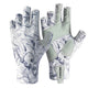 Our Fin-Flank Sun Gloves provide extreme sun protection as well as preventing blisters on long rows. We feature a unique white-pallet water print on these cooling wicking poly-Spandex Sun Gloves. Extended finger reinforcements provide stripping protection. The tough microfiber palms are perfect for fishermen, rowers, bikers, and anyone who wants to show off their general fishy-ness. Three sizes.