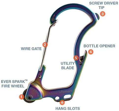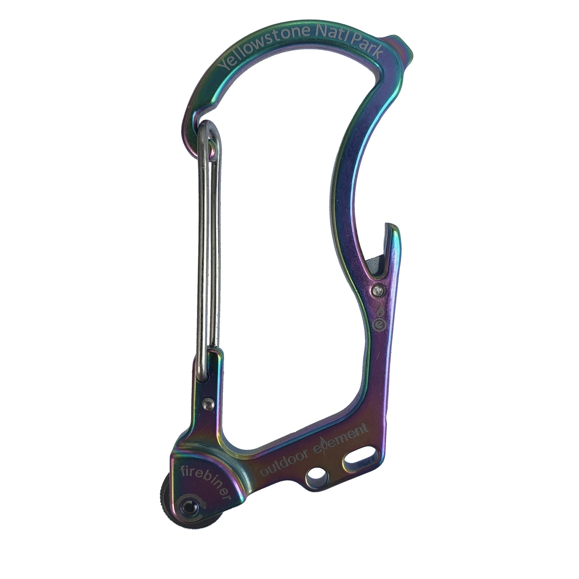 The Custom Etched Firebiner by Outdoor Element is a survival carabiner that is as much for everyday use as it is for survival enhancement, now in Custom Etched designs! Combining a carabiner, screwdriver, utility blade, bottle opener, hang slots, and oh yeah...a patented, fire-starting EverSpark Wheel all in a lightweight, 1 ounce stainless steel body. The Firebiner will keep you prepared for many of life's gotchas whether you're needing to light the camp stove or just cutting a loose thread from your dress shirt at the office. These make perfect souvenirs and gifts.