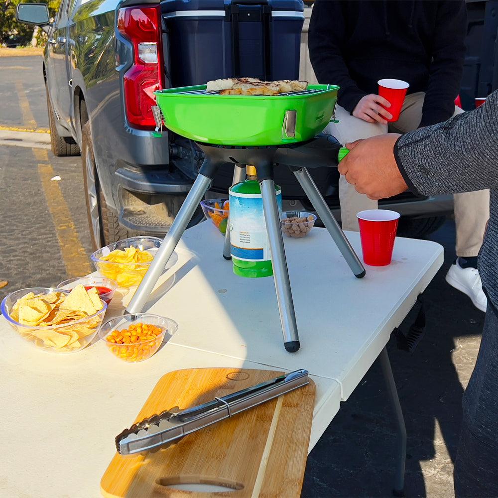 Four removable legs provide a sturdy base for cooking and easily detach for compact transport and storage-perfect for camping, tailgating, or overlanding.
