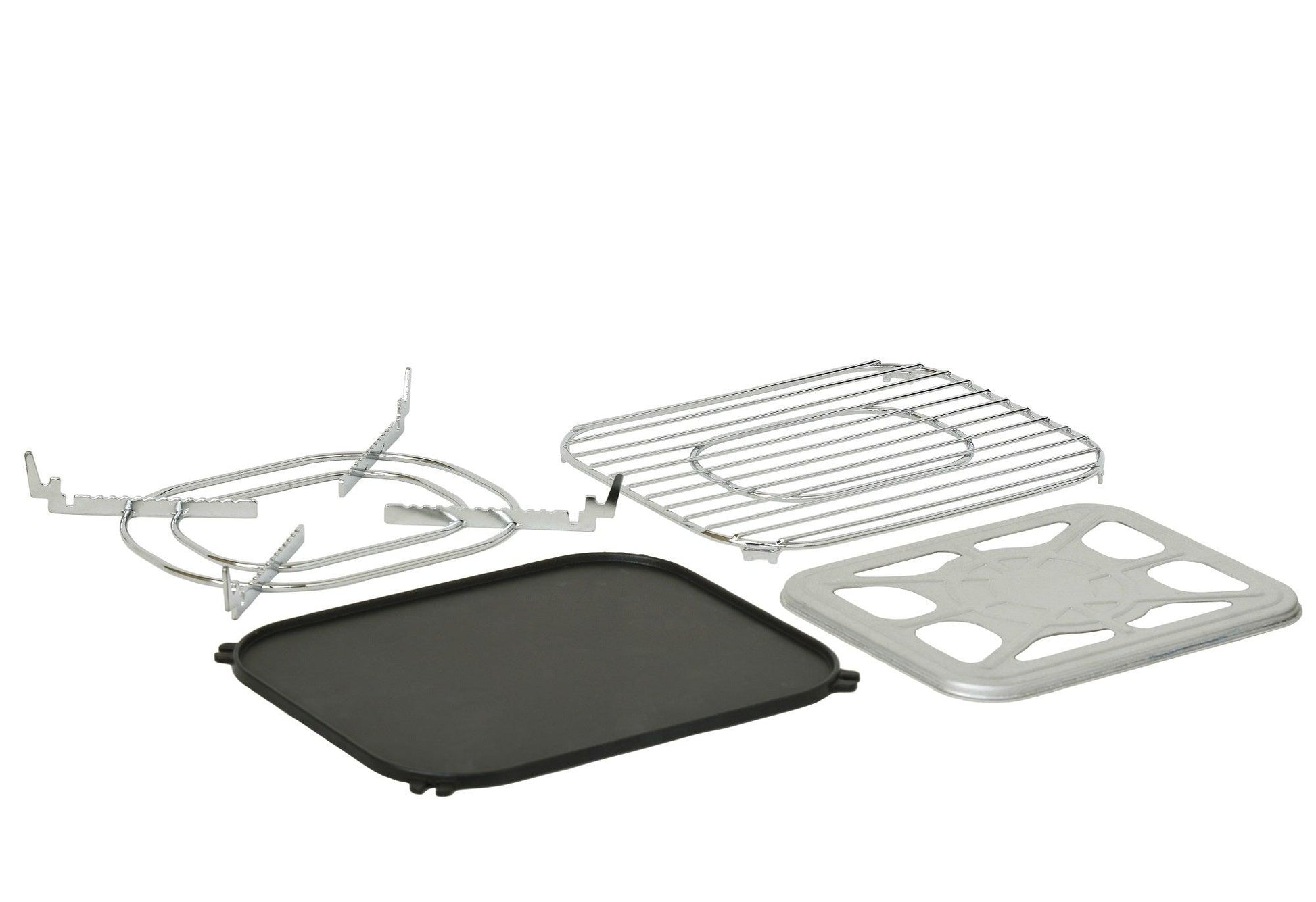 Includes a stovetop grate, BBQ grate, double-sided griddle, and pot/wok cover, giving you the freedom to cook anything from pancakes to stir-fry to grilled steaks.
