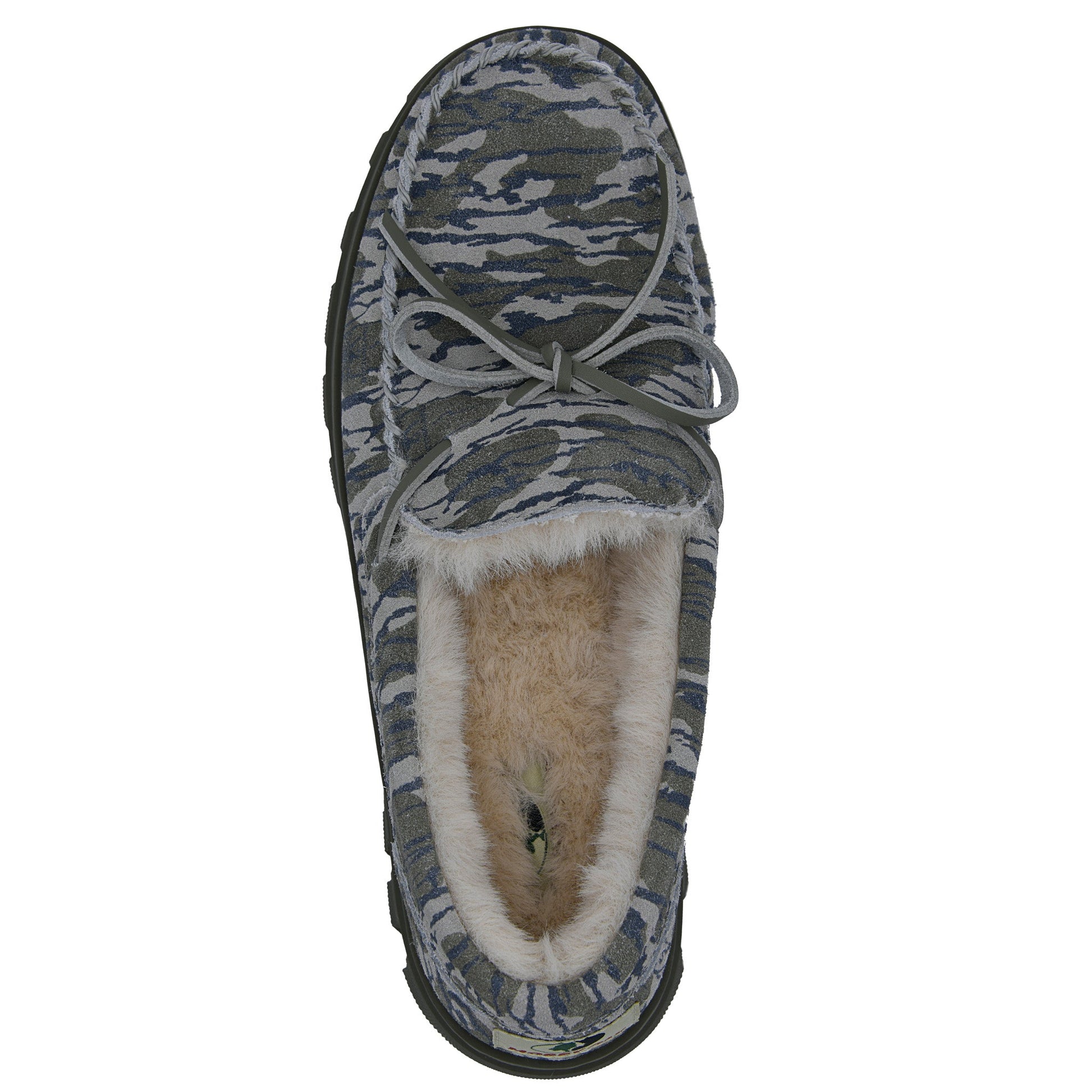 The Flex slipper delivers a warm and soothing feeling, their rugged construction can handle both indoor and outdoor use. To begin with, the suede leather uppers are soft yet provide years of durability. Full faux-shearling linings surround your feet with cozy warmth. Beneath your feet, high-impact foam foot beds, memory foam insoles, and ZZZGel inserts provide a vacation of cushioned comfort for tired feet. At the bottom, these men's slippers come equipped with a 4 Wheel Drive rubber outsole that add rugged durability and impressive traction to ever step. The ever-popular Mossy Oak® Original Bottomland camo adds 1 more reason to choose these manly slippers.