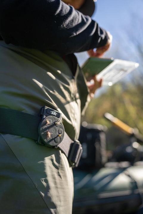 56 lb pull force magnetic holster for tools and flies. It’s rubber coated and adjustable with easy clip on/off action. Attach to belts, waders, packs & straps or anywhere you need a 3rd hand!