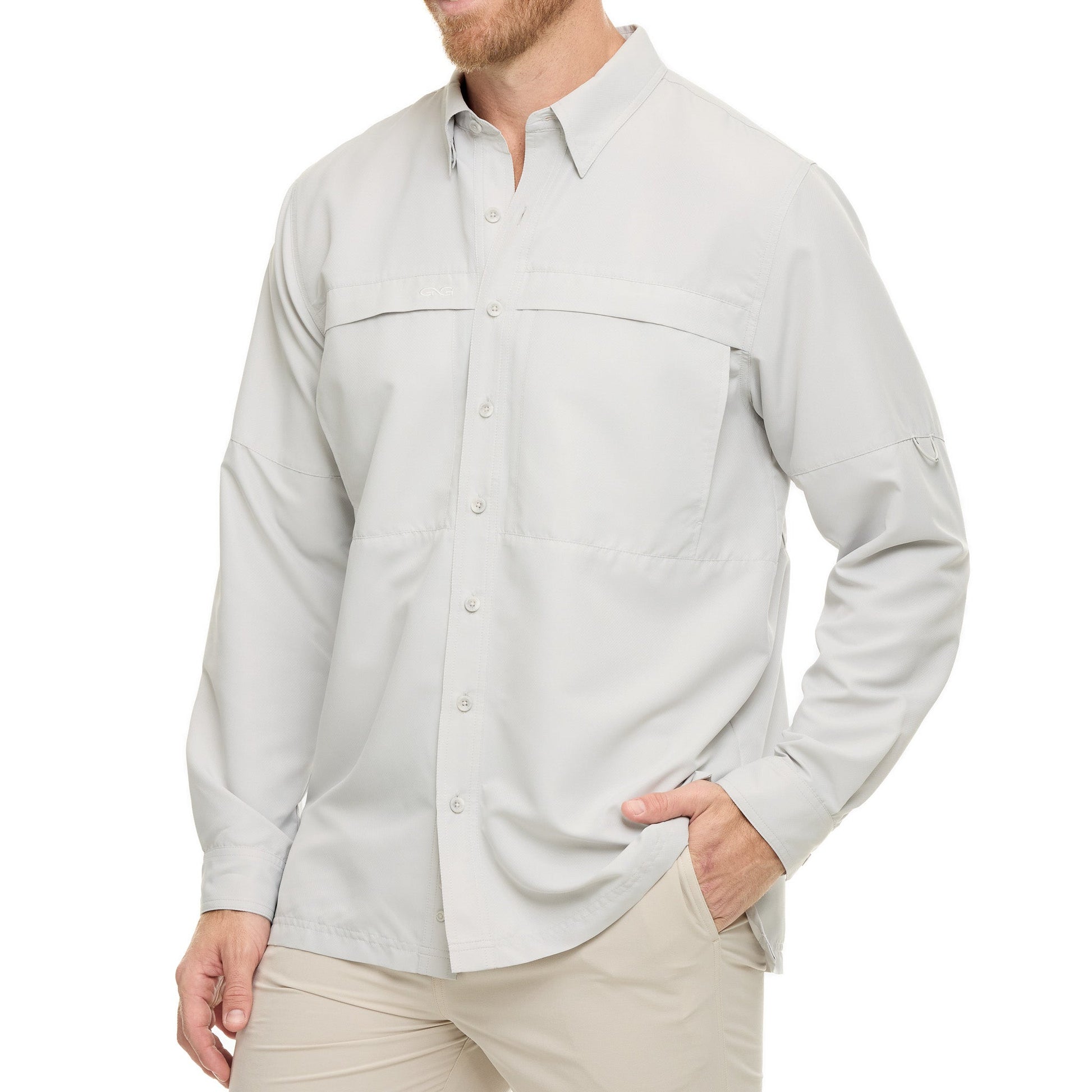 Built for those who thrive in the outdoors, the Original Shirt | Long Sleeve combines comfort and function for your adventures. Made from lightweight microfiber with UPF 50+ sun protection, it shields you from the elements while keeping you cool with mesh-lined vents at the chest and back. Quick-drying and wrinkle-resistant, this shirt is perfect for the unpredictable demands of hunting, fishing, or outdoor exploration. Hidden chest pockets and a bungee loop system add secure storage and versatility, while stain resistance ensures durability in rugged conditions. With a hidden lay-flat collar and tagless design, it offers a polished, no-fuss fit that transitions effortlessly from the field to the lodge.