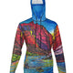 Grand Canyon is our newest Mountaincognito lightweight SunPro Hoodie featuring whimsical wonderful artwork from Heidi Messner. Rafts head down the Grand Canyon in this vibrant image. The sun protective UPF50 Sunpro Hoodie features a lightweight (150gr.) 4-way stretch fabric (85% polyester 15% Spandex) for comfort and fit unmatched. An internal neck gaiter built into the hood is included for free. Great sun protection, moisture wicking apparel.