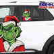 Wave back to your favorite grim Santa. He'll bring a smile and laugh to all, especially during the Christmas season. Our Ride-A-Long perforated window decals give the appearance of someone (or something) riding behind you. These have tiny holes in them so you can view through them from inside of the vehicle.