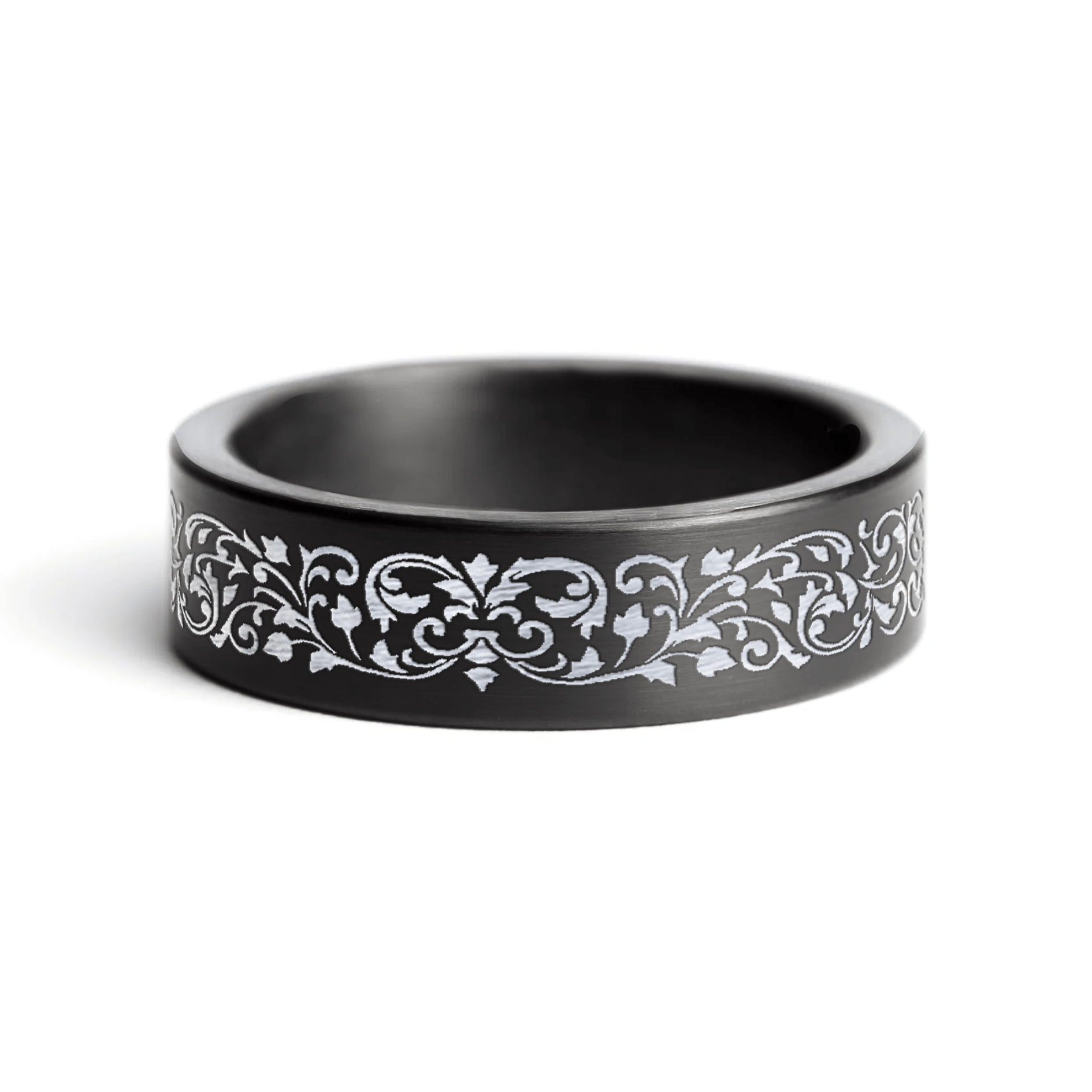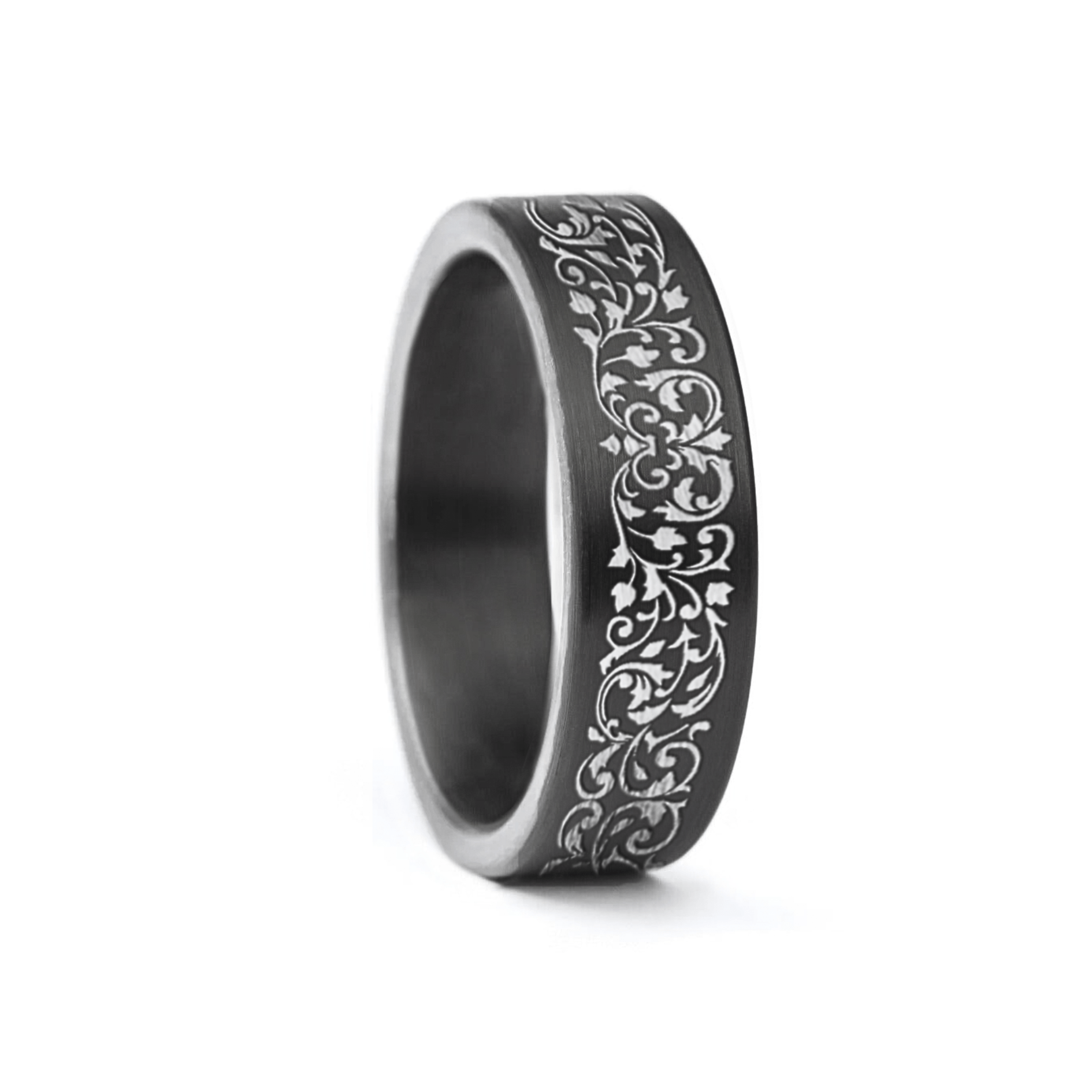 - The band features our own unique engraved scroll pattern on the outside of the band.