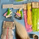 One section of each color of Ostrich Herl: Yellow, Chartreuse, Pink