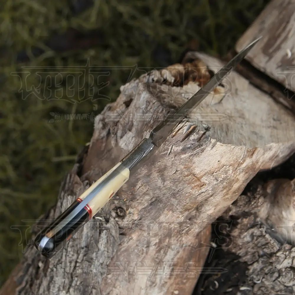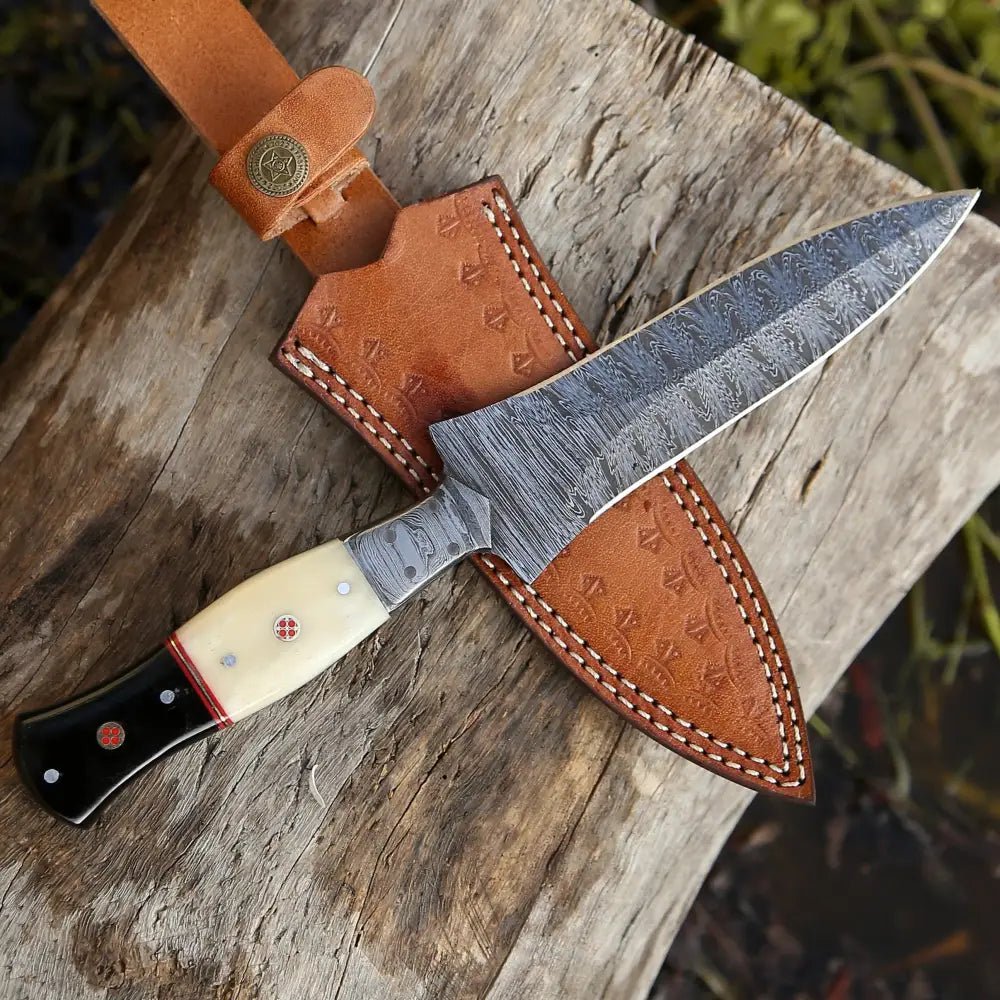 This superb design. The blade of this knife has a nice pattern and is made of 512 layers of stainless steel and high carbon steel with hardness 55-60 HRC. This robust knife is lab tested under intense conditions; the balance and shape of this knife ensure a perfect grip.
