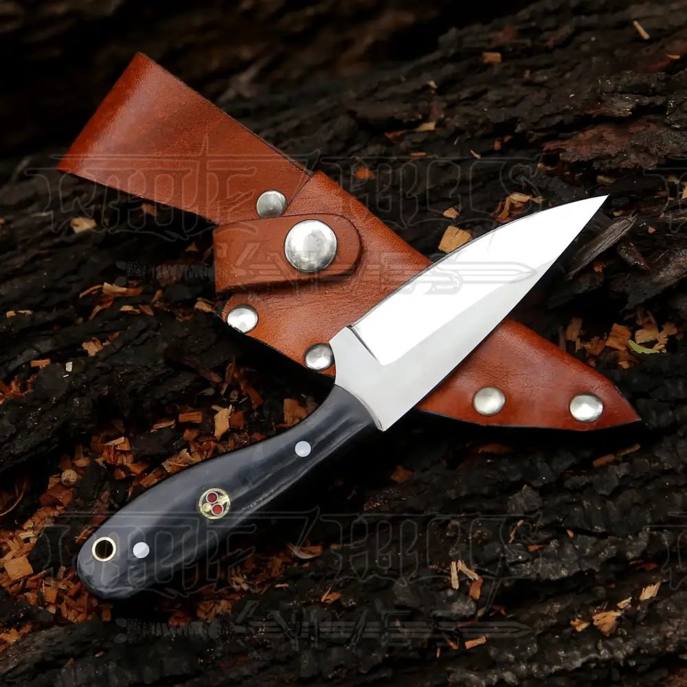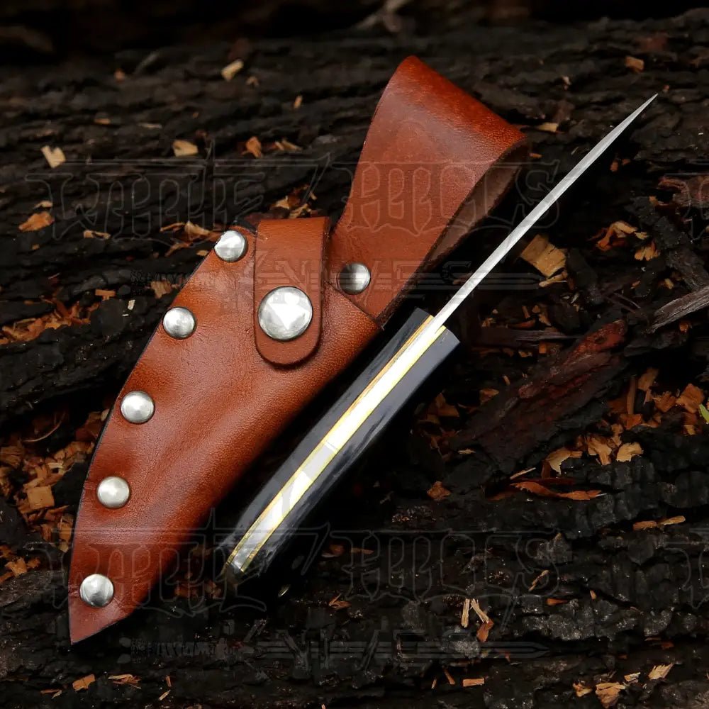 Our knives are all hand-crafted, durable, and one-of-a-kind. This exquisite knife features a hand-forged design with beautifully detailed file work on the blade. The blade is made of D2 semi-stainless steel with a hardness rating of 55-60 HRC, and has been rigorously tested for durability in extreme conditions. The well-balanced shape of the knife ensures a secure grip. The handle is made of natural Buffalo Horn, making each knife unique and impossible to replicate. D2 steel is a premium-grade semi-stainless steel known for its high carbon and chromium content, providing exceptional wear-resistance and resistance to abrasion and scratching. This steel is highly sought after for its remarkable durability. The incomparable use of Natural Buffalo Horn in the handle of this product sets it apart from the rest.