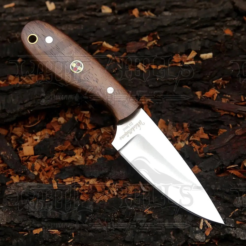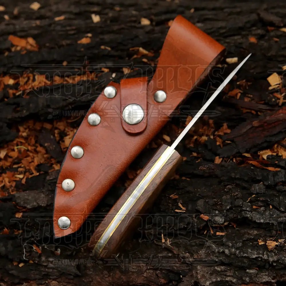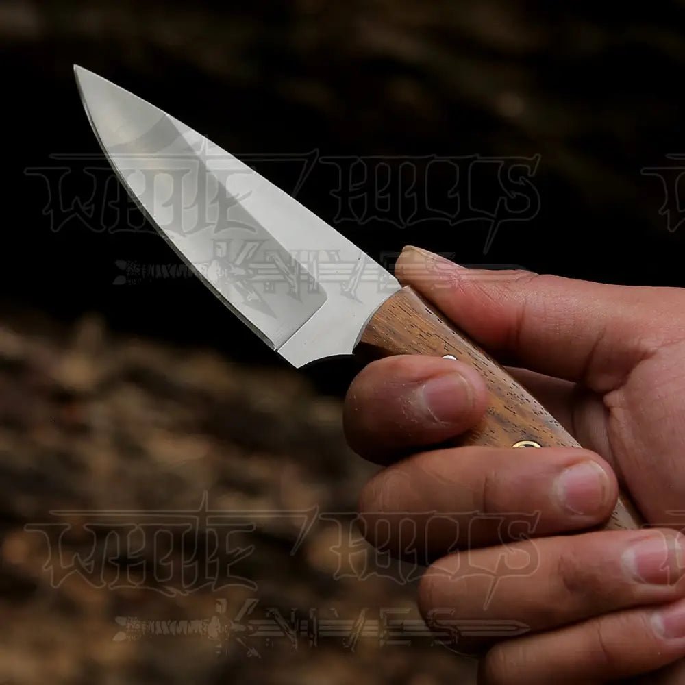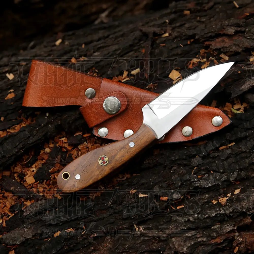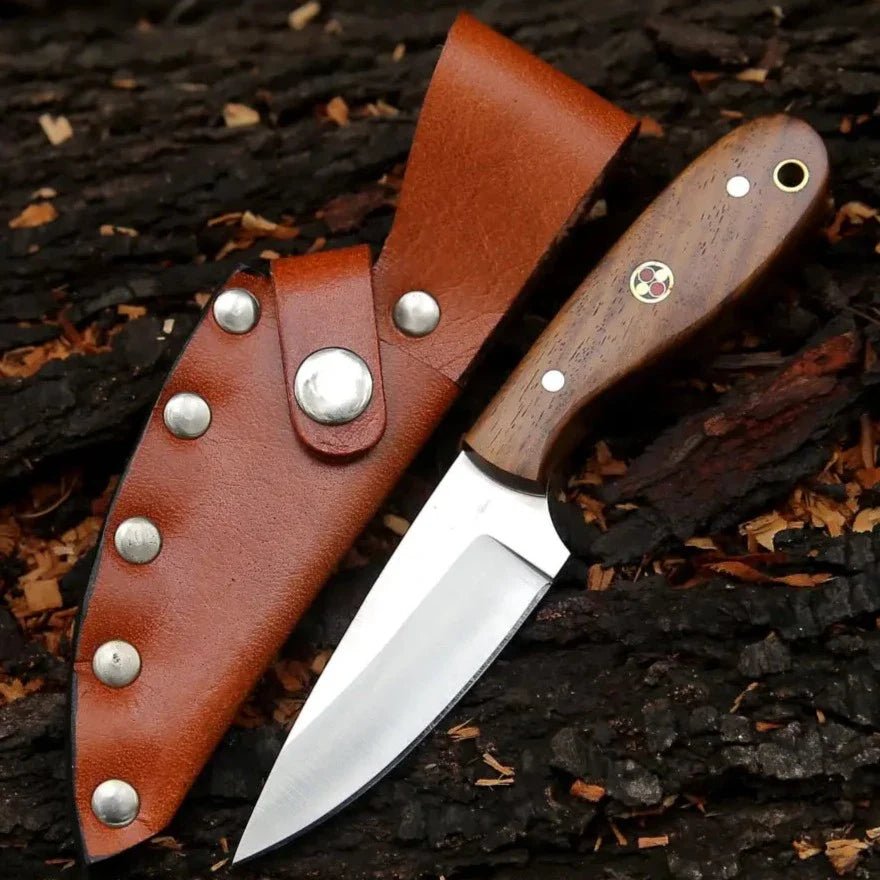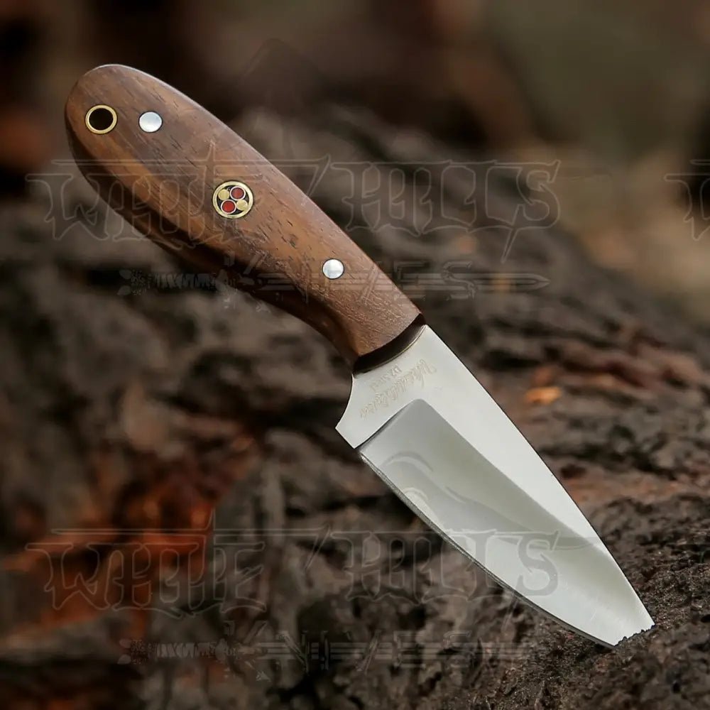 Handcrafted using the finest materials, this premium-quality hand-forged Skinner knife boasts an intricately designed D2 semi-stainless steel blade with a 55-60 HRC hardness. Tested under extreme conditions, its balanced and ergonomic shape ensures reliable performance. The handle is made from one-of-a-kind natural Walnut, making each knife unique. D2 steel, known for its exceptional durability and resistance to wear, is highly coveted in the industry. The unparalleled use of Natural Walnut in this handle sets this product apart from the rest.