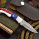 The razor-sharp Damascus blade delivers outstanding cutting power and edge retention, while the ergonomic Texas flag handle offers a secure, comfortable grip. Complete with a premium leather sheath, this knife is ready for everyday carry (EDC) or to proudly display in your collection.