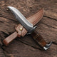 Experience the strength and craftsmanship of this custom handmade bowie knife, designed for durability and performance. Featuring a 9-inch carbon steel blade, this knife offers superior sharpness and resilience. The wood handle with a steel guard ensures a comfortable grip, providing both style and functionality. Ideal for hunting, survival, or display, this knife comes with a premium leather sheath for secure storage and easy carry.