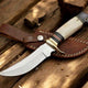 Experience precision and durability with this custom handmade hunting knife, crafted for hunters and outdoor enthusiasts. Featuring a razor-sharp carbon steel blade, this 9-inch knife ensures superior cutting performance in any outdoor setting. The bone and wood handle with a brass guard offers a secure grip, enhancing both style and functionality. Comes with a premium leather sheath for safe and convenient carrying.