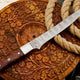 Experience the perfect blend of sharpness and craftsmanship with this handmade Damascus fillet knife. Designed for precision filleting, this knife features an 8-inch Damascus steel blade that ensures effortless slicing and durability. The ergonomic rosewood handle provides a comfortable grip for extended use, making it an essential tool for chefs and anglers alike.