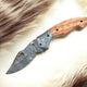 Experience craftsmanship at its finest with this custom handmade folding knife. The 3-inch Damascus steel blade offers exceptional sharpness and durability, while the olivewood handle with a Damascus steel bolster provides a comfortable and elegant grip. The liner lock mechanism ensures secure usage, and the knife comes with a premium leather case for safekeeping. A perfect choice for collectors, outdoor enthusiasts, and everyday carry.