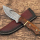 Experience precision and durability with this custom handmade hunting knife featuring a Damascus steel gut hook blade. Designed for hunters and outdoor enthusiasts, the 4.5-inch razor-sharp blade ensures effortless skinning and fieldwork. The ergonomic rosewood handle provides a secure grip, while the premium leather sheath offers safe and stylish storage.