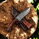 Experience precision and craftsmanship with this custom handmade hunting knife. Forged from high-quality Damascus steel, the 6.5-inch razor-sharp blade ensures durability and superior edge retention. The ergonomic rosewood handle offers a comfortable grip, making it ideal for hunting, camping, and outdoor adventures. This exquisite knife comes with a premium leather sheath for safe storage and easy carrying.
