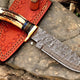 Experience superior craftsmanship with this custom handmade hunting knife designed for durability and performance. Featuring a Damascus steel blade, this knife offers exceptional sharpness and edge retention. The 9.5-inch overall length provides a perfect balance, while the 5.5-inch blade ensures precision cutting in the wild. The handle, crafted from antler horn and exotic wood, delivers a comfortable grip, complemented by a brass guard for added safety. Comes with a premium leather sheath for secure carry.