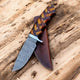 Experience precision and craftsmanship with this custom handmade hunting knife. Featuring a Damascus steel blade with a 3.5-inch cutting edge, this knife ensures durability and sharpness for all your outdoor adventures. The 8-inch overall length provides a balanced grip, enhanced by a stunning rosewood and olivewood handle for a comfortable and secure hold. Comes with a premium leather sheath for protection and easy carry.