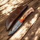 Experience the perfect blend of craftsmanship and performance with this custom handmade hunting knife. Featuring a 9-inch Damascus steel blade, it delivers superior edge retention and durability. The 4.5-inch epoxy resin and olivewood handle offers a comfortable grip and a unique, elegant look. Whether you're in the great outdoors or adding to your collection, this knife is designed for reliability and style. It comes with a premium leather sheath for safe storage and easy carrying.