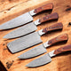 Upgrade your culinary experience with this handcrafted kitchen knives set, forged from premium Damascus steel. Designed for precision, durability, and style, each knife features an exotic wood handle for a comfortable grip. The set ranges from 8 to 13 inches, ensuring versatility for every cutting task. Comes with a high-quality leather roll for secure storage.
