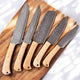 Upgrade your culinary experience with our custom handmade Damascus kitchen knives. Crafted from premium Damascus steel, these knives offer exceptional sharpness, durability, and a unique wave-like pattern on the blade. Ranging from 13 inches to 8 inches, this versatile set ensures precision for every kitchen task. The bone handle provides a comfortable, firm grip, enhancing control and elegance. Comes with a leather roll for safe storage and easy portability.