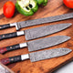 Upgrade your culinary experience with our custom handmade Damascus kitchen knives set. Each knife is crafted from high-quality Damascus steel, ensuring superior sharpness and durability. The exotic wood handle, paired with a sturdy steel bolster, provides a comfortable and secure grip. With lengths ranging from 13 inches to 8 inches, this set is perfect for precision cutting, chopping, and slicing. Comes with a leather roll for safe storage and easy portability.