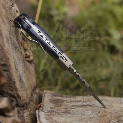 This superb design knife is hand forged.Blade of this knife has a nice file work and is made of 512 layers of stainless steel and high carbon steel with hardness 55-60 HRC .This robust knife is lab tested under intense conditions,the balance and shape of this knife ensures perfect grip.