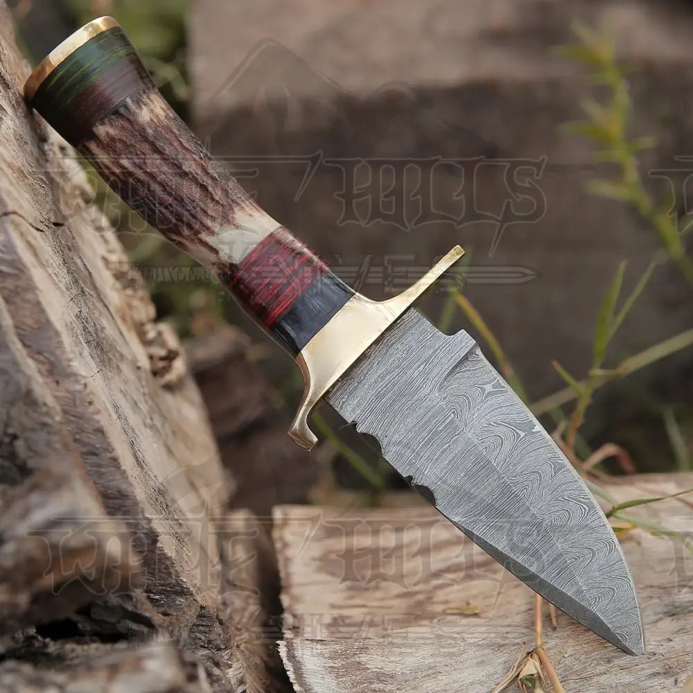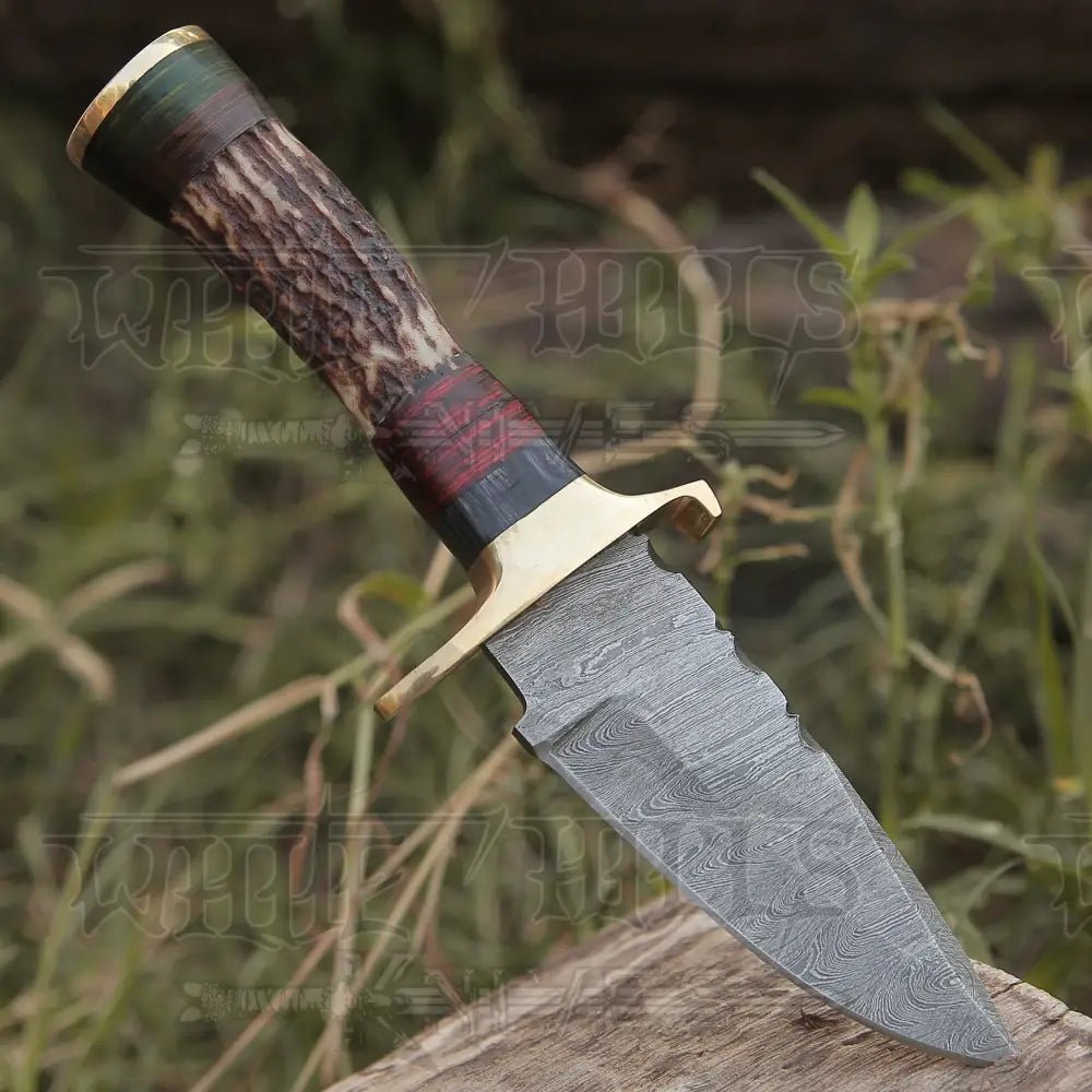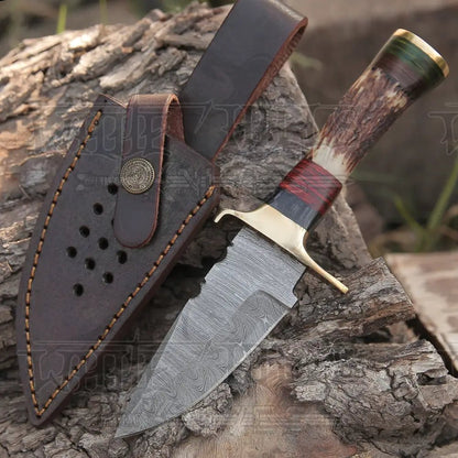 CUSTOM HAND FORGED DAMASCUS STEEL HUNTING KNIFE & COME WITH PURE LEATHER SHEATH