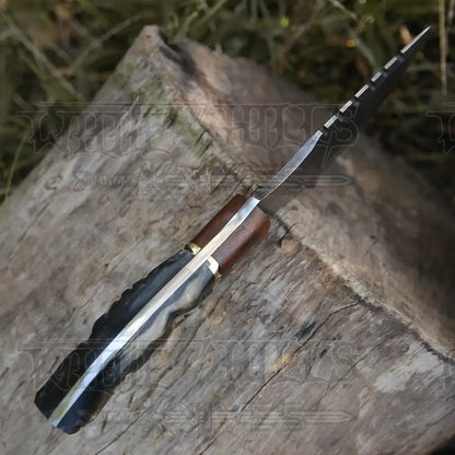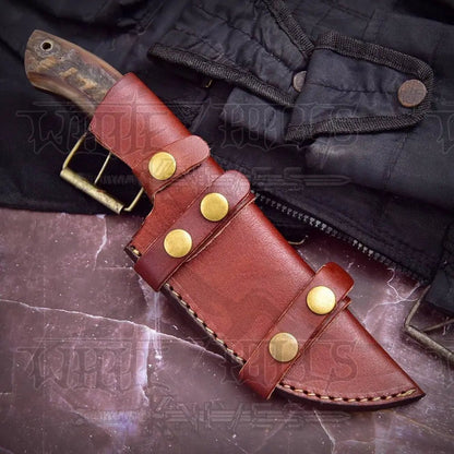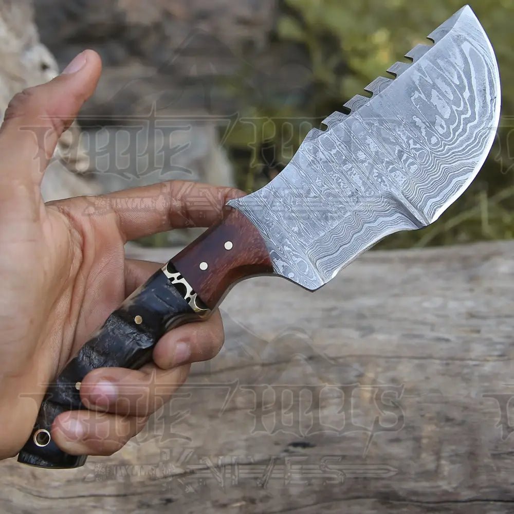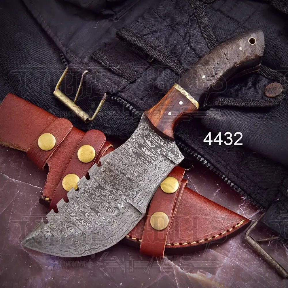 Constructed with Damascus steel, this expertly crafted knife boasts a beautiful file work design. The blade is made with 512 layers of stainless steel and high carbon steel, providing a remarkable hardness of 55-60 HRC. Thoroughly tested in rigorous conditions, this sturdy knife offers a perfectly balanced shape for optimal grip.