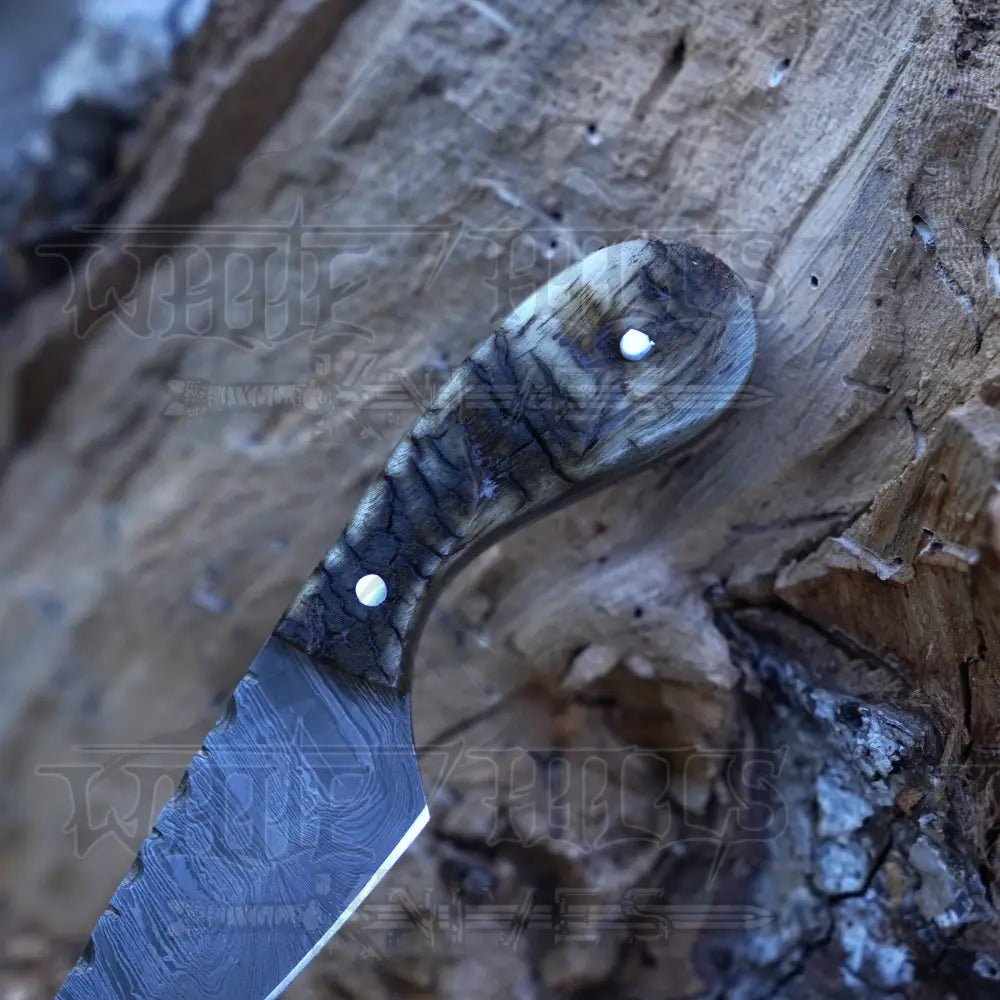 Please note: Each knife is handmade from natural materials, there will be some variation in color, Damascus pattern and overall look. The knife you receive will have the same attention to quality and detail as the one pictured but may differ slightly in appearance.