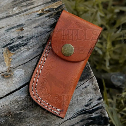 CUSTOM HAND FORGED DAMASCUS STEEL FOLDING KNIFE COME WITH PURE LEATHER SHEATH