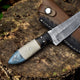 Elevate your outdoor experience with this custom handmade skinning knife, designed for precision and durability. The 4.25-inch blade is crafted from high-quality Damascus steel, ensuring exceptional sharpness and strength for all your skinning needs. The handle, made from a unique combination of epoxy resin, bone, and rosewood, offers a comfortable and secure grip, even in the toughest conditions.