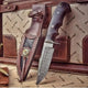 This superb design knife is hand forged.Blade of this knife has a nice file work and is made of 512 layers of stainless steel and high carbon steel with hardness 55-60 HRC. This robust knife is lab tested under intense conditions,; the balance and shape of this knife ensures perfect grip.