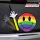 Make someone's day sitting in traffic with our Have a Nice Day Rainbow Waving Smiley! Includes laminated, UV protected window decal and double sided (reversible) arm WiperTag that fits on most rear wipers, left or right sided. Can also attach on top mounted wipers upside down.