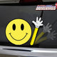 Make someone's day sitting in traffic with our Have a Nice Day Waving Smiley! Includes laminated, UV protected window decal and double sided (reversible) arm WiperTag that fits on most rear wipers, left or right sided. Can also attach on top mounted wipers upside down.