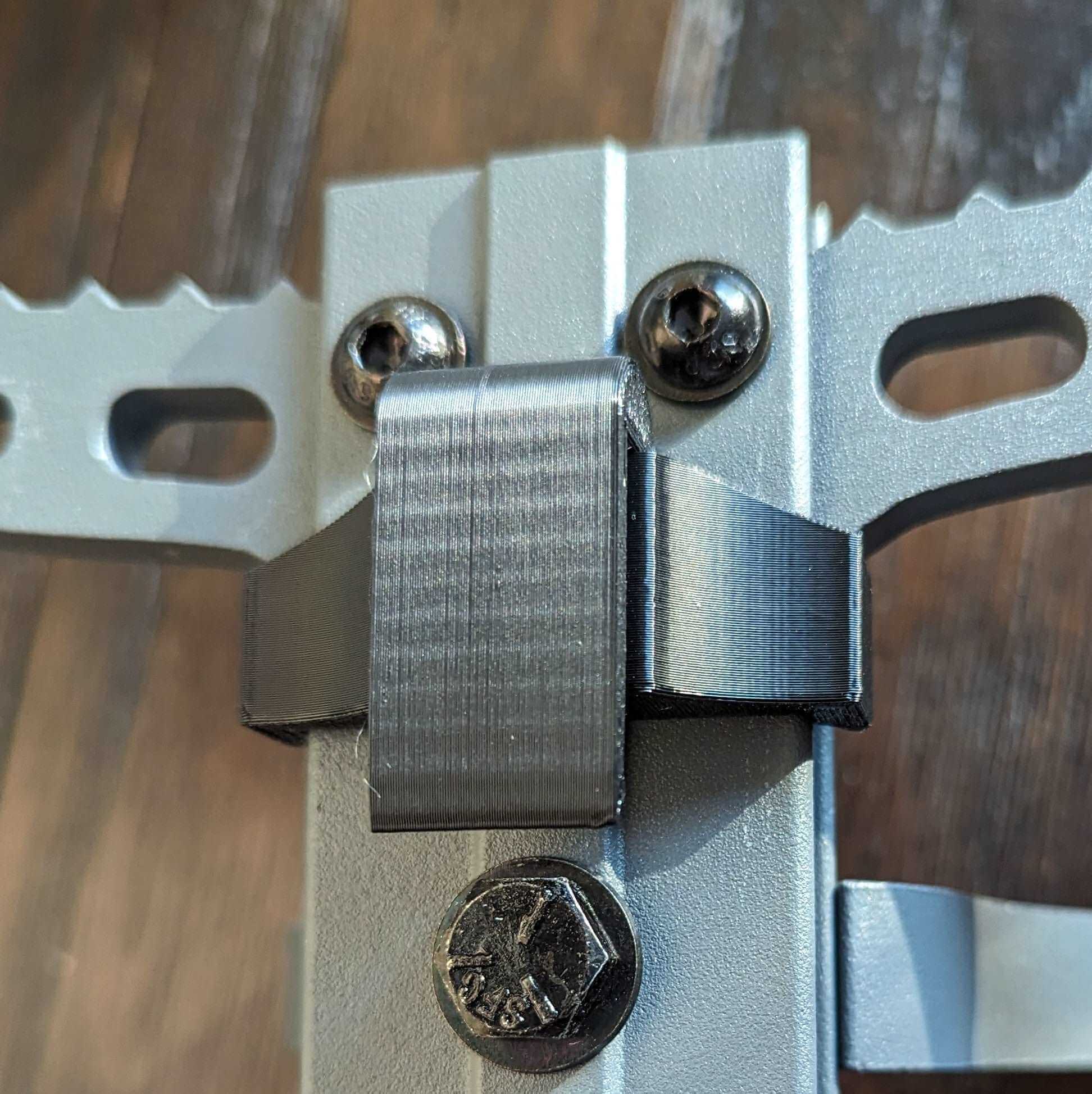 Molle climbing stick caddy designed for the Hawk Helium stick. The bracket is designed to always stay on the stick and the back clip easily lifts on/off a molle loop or a 1" belt for when climbing. Two pieces held together with a stainless steel screw. Saddle and stick(s) not included.
