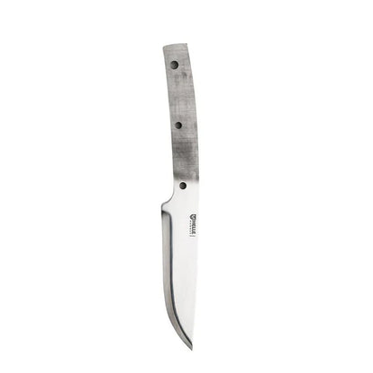#HB-1300 is the blade from the Helle Temagami. The rivet holes are about .20" in diameter, the thong hole is about .25" in diameter. This would make a seriously stout wilderness or utility knife
