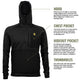 - Thumbholes: Integrated thumbholes in the sleeves helps keep hands warm and sleeves in place during active pursuits.