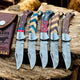 This Holiday Gift Pack: Set of 5 Folding Pocket Knives features premium craftsmanship and rugged reliability. Each knife measures 7 inches overall with a 3-inch Damascus Steel folding blade that delivers exceptional sharpness and lasting edge retention.
