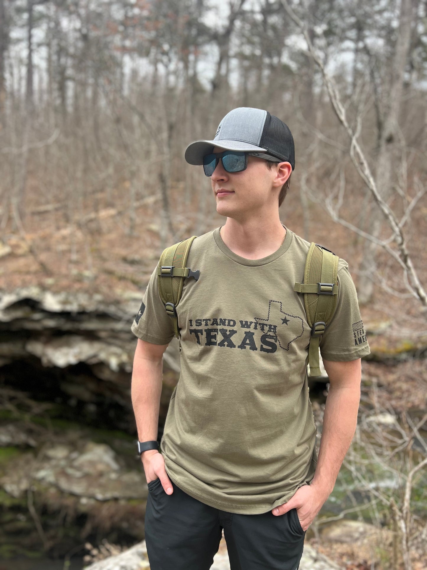 Show your support for Texas stepping up and securing our southern border when the federal government refuses to. The outline of the state of Texas is done in razor wire representing what they are doing down there. We put the Texas state flag on the right sleeve of this one instead of the American flag, it's all Texas. Don't Mess with Texas!!! |
